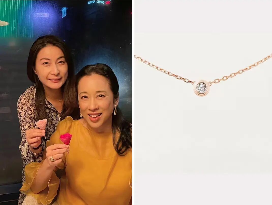 她日常戴的首饰,也都是大牌的基本款,款式也简单大方。比如常戴的卡地亚经典钻石项链,主要设计就是一枚单钻,给生活化的穿衣画龙点睛,给朱玲玲庆生的时候曾戴过。