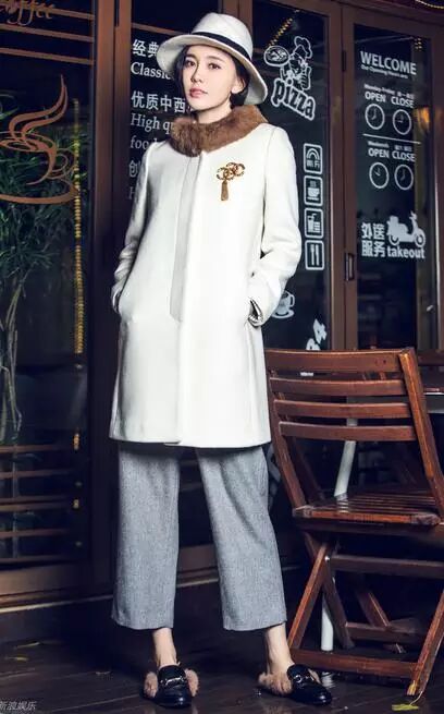 吕佳容这身毛茸茸外套和灰色阔腿裤很有70年代的复古风,不老气反而更有独特的民国女性魅力。