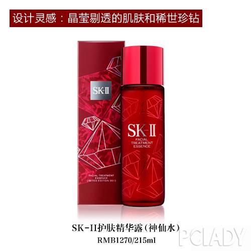 SK-II从晶莹剔透的肌肤中汲取设计灵感,将钻石般夺目的光芒赋予现代女性的优雅和自信。红色的磨砂瓶身被精巧绘制的钻石轮廓侧影包覆,光影交错中展现出经典优雅的格调。瓶身上点缀钻石璀璨的光芒,如同温暖红色节日中的纷扬雪花,让你在冰凉中感受季节的美妙。