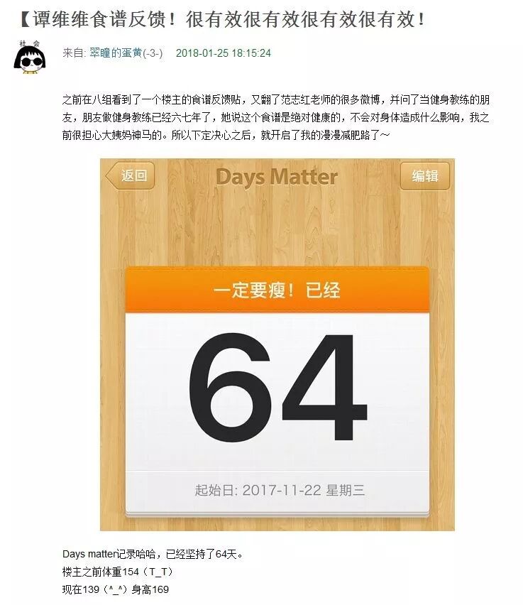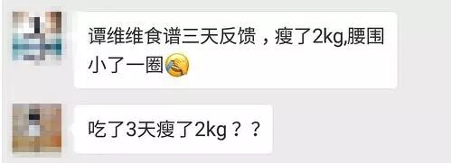 这样励志的故事是不可能没有追随者的~很多网友开始实验“谭维维减肥食谱”的践行,很快也有了反馈: