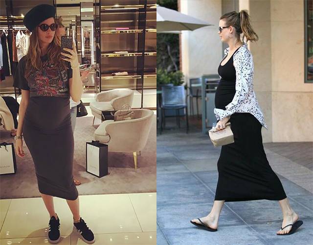 在孕期,南瓜常常穿着一袭长裙、脚蹬平底鞋出街。为了小小南瓜能健康出生,南瓜暂别了高跟鞋和化妆品。