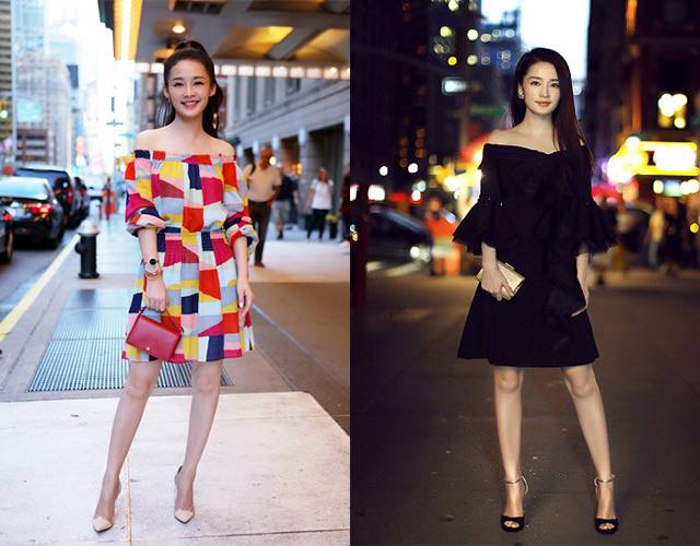 李沁的私服搭配也是可圈可点,很懂得如何扬长避短。肩膀不够宽,她就用一字肩连衣短裙拉长肩线,再顺便秀出美腿。