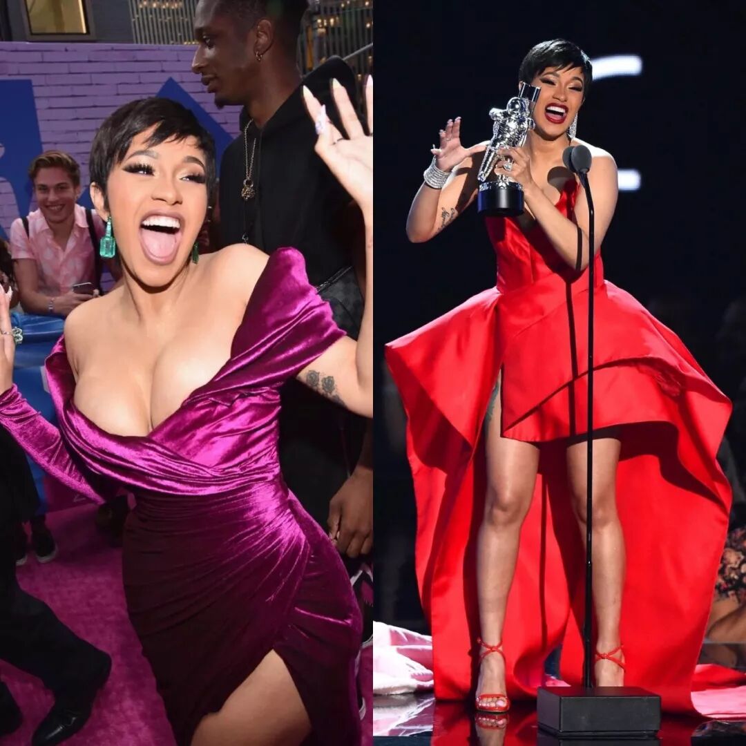 Cardi B今年以12项提名领跑,3项大奖收入囊中。在红毯上就已经按捺不住满脸的喜悦了,轻巧的跑了起来。不得不说刚刚生完baby的Cardi,身材依旧火辣,一身Nicolas Lebran紫色高衩丝绒长裙亮相,在丝绒的光泽和褶皱里,更能凸显完美曲线。利落的短发和眼神中流露的温柔,甚至比生娃前还要更有魅力呢!