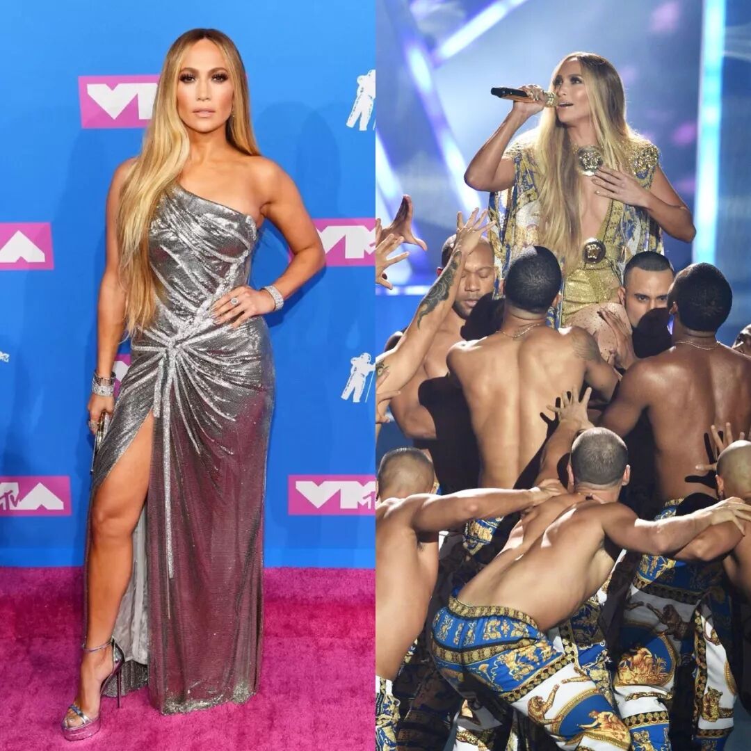 Jennifer Lopez则以前辈身份现身典礼现场,获得Michael Jackson先锋大奖,以此表彰她在音乐事业上取得的辉煌成绩。Jennifer一袭斜肩银色长裙亮相红毯,头发垂在胸前,肩颈线条堪称完美,这49岁的身材让多少少女都自叹不如,难怪大家都想知道她的保养秘籍!随后还一口气串烧了8首大热单曲,舞台表现力不减当年,甚至比年轻人火力还强劲,看的好过瘾!
