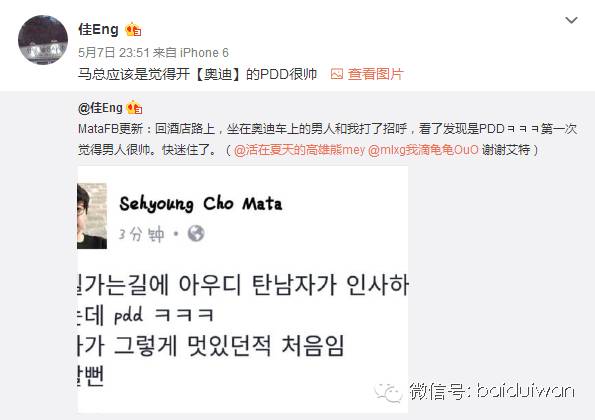 被马总看上的开奥迪的男人,PDD你倒是回应一下啊,毕竟Mata也是被王思聪看上的。