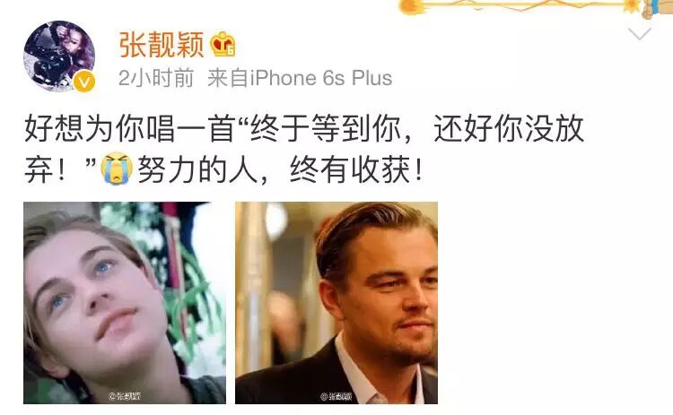 张靓颖则想用歌声表示庆祝:“好想为你唱一首“终于等到你,还好你没放弃!”[泪]努力的人,终有收获!”