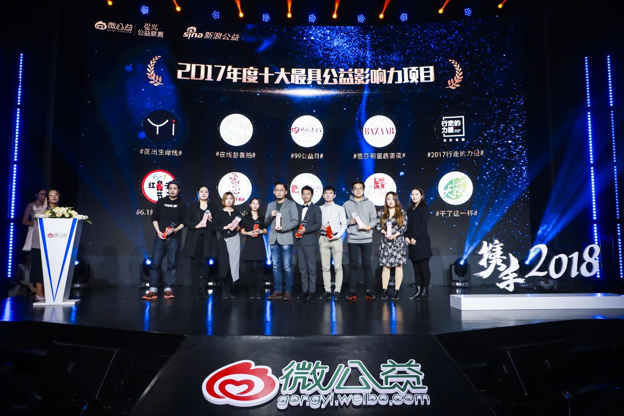 1月8日,由新浪微公益联合新浪娱乐、微博政府媒体事业部共同主办的新浪微公益颁奖典礼在北京举行。作为拥有3.76亿月活跃用户、同时也具备传播和筹款功能的社会化公益平台,新浪微公益通过联动政府机构、公益机构、名人明星、专家学者、企业、媒体和爱心网友,建立了一套快速、全面、高效的公益生态体系。为致敬2017年收获于这片生态土壤的公益硕果,共同展望锐意创新的2018,本届颁奖典礼以“携手2018”为主题,现场颁布了包括2017年度“十大最具影响力公益蓝V”、“十大最具公益影响力话题”、“十大最具公益影响力项目”、 “十大最具公益影响力明星”及2017“跨界公益典范人物”、“跨界公益贡献奖”、“爱心贡献奖”、“中国公益致敬奖”等多个奖项,吸引了社会各界人士的高度关注。