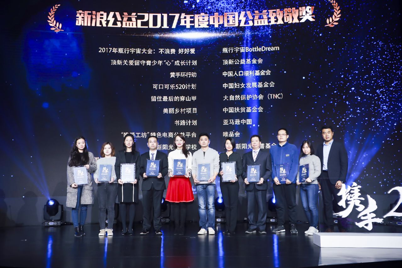 【2017年度中国公益致敬奖】获奖名单:@天使妈妈基金会的地中海贫血防治救助项目、顶新公益基金会的顶新关爱留守青少年“心”成长计划、@中国人口福利基金会的黄手环行动、@BottleDream的2017年瓶行宇宙大会:不浪费 好好爱、@亚马逊的书路计划、@中国妇女发展基金会的可口可乐520计划、@唯品会的“唯爱工坊”特色电商公益平台、@北京新阳光慈善基金会的新阳光病房学校、@大自然保护协会TNC的留住最后的穿山甲、@中国扶贫基金会的美丽乡村项目。