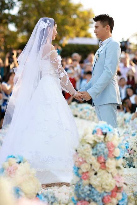 婚纱照更是美得一塌糊涂。是啊,从穿越剧相爱到现实,大概是真正相信爱情的人才能做到吧。相信神话的人总是会活得像公主。