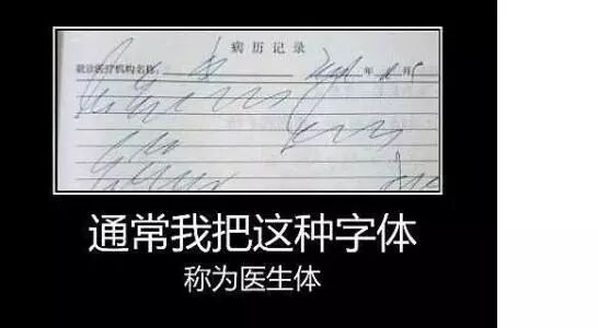 大家都知道的,医生写的字可谓是天书了,去年有次去医院,医生给我写病例,我看龙飞凤舞的我一个字不认识,我就和医生说:医生,你字不要写的那么草,我看不懂。医生抬头看了我一眼,没说话,继续龙飞凤舞,写完我一看,比我没说话之前还要难认。