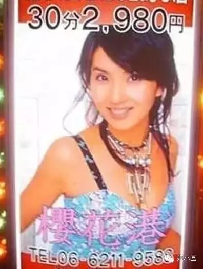 日本红灯区的某家色情场所,用阿娇钟欣桐的照片来做招牌: