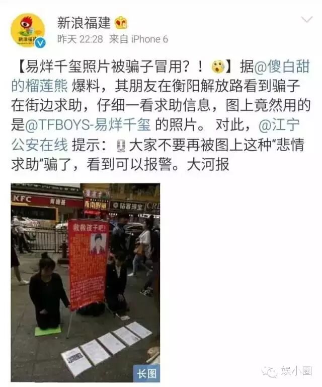 话说,小编昨天刷微博看到了易烊千玺照片被骗子盗用的新闻: