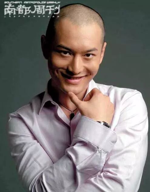当时有片子需要他剃头,剃完之后的发际线轮廓,看起来也是挺高的,