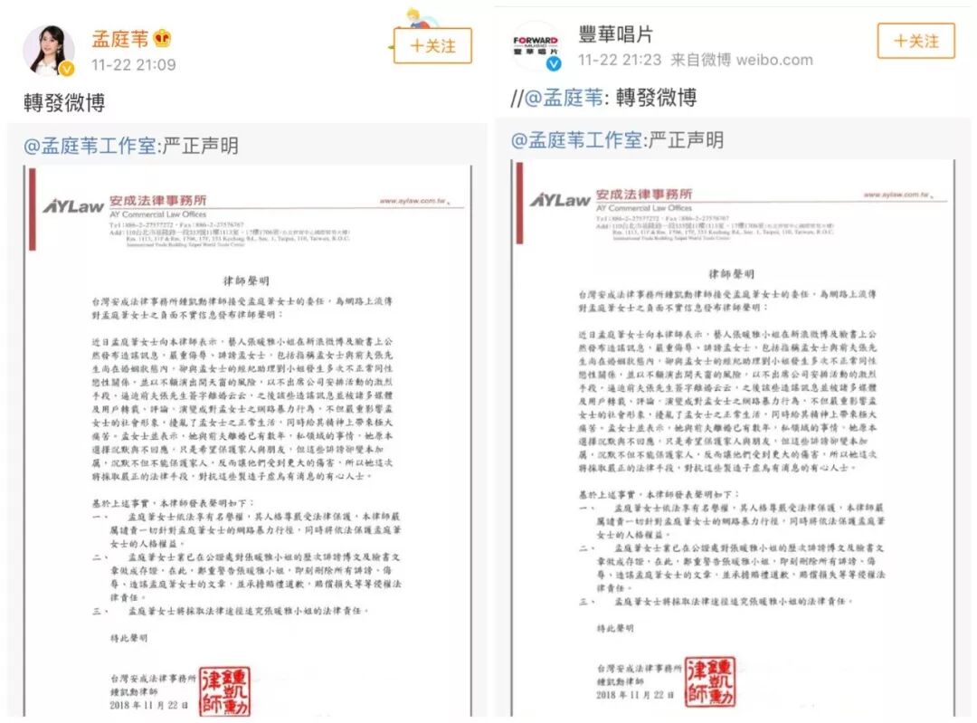 孟庭苇自己的微博转发了以上声明。孟庭苇所属的丰华唱片回应说,“这是艺人的家务事,而且一吵再吵很多年了,不想再二度伤害彼此与无辜的小孩,所以就不随波逐流回应了。”