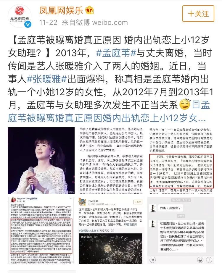与张暖雅签约的正是孟庭苇前夫张志鹏的公司,多年来她一直被外界看作是插足孟庭苇婚姻,并直接导致他们离婚的罪魁祸首,但不知道为什么,张小姐始终保持沉默,却突然在5年之后十分有正义感地爆发了。