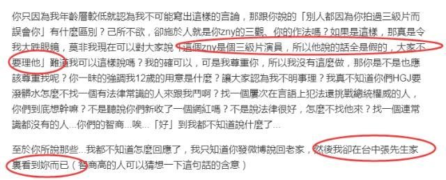 自己与他们的离婚本来毫无关系,却意外被卷入这场婚变,被说成是破坏人家家庭的小三,还因为之前的作品被贴上拍三级片出道的标签。