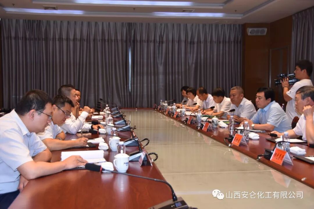 调研结束后,山西省股权交易中心的领导及河津市相关单位领导,集团董事长薛靛民、党委书记王全家等在炭黑研发中心二楼会议室举行座谈会。会上山西省股权交易中心总经理郭彪与薛靛民董事长就如何为企业创造有利环境,如何更好的为企业提供多元化、专业化、个性化的金融政策支持等方面就行了交流。郭彪希望双方加强联系,依托股权交易这一平台,更好的为企业发展做好金融支持和服务。