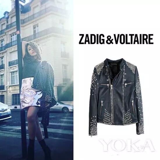 以ZADIG & VOLTAIRE铆钉皮革外套配衬一身抢眼的时尚造型,令个人风格更为鲜明突出!