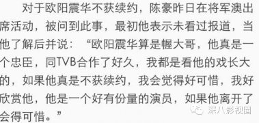 陈豪隐晦地说好可惜,称欧阳震华真真是个忠臣啊。可自古忠臣就难有好下场