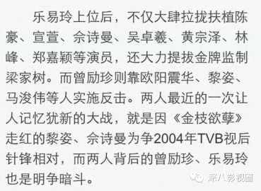 八到这里,就不得不说下乐易玲和曾励珍的恩怨了。TVB的内斗由来已久,其中的勾心斗角程度丝毫不亚于经典剧集《金枝欲孽》,细八下来就没完没了了,这里简单说下乐易玲和曾励珍的宫心计