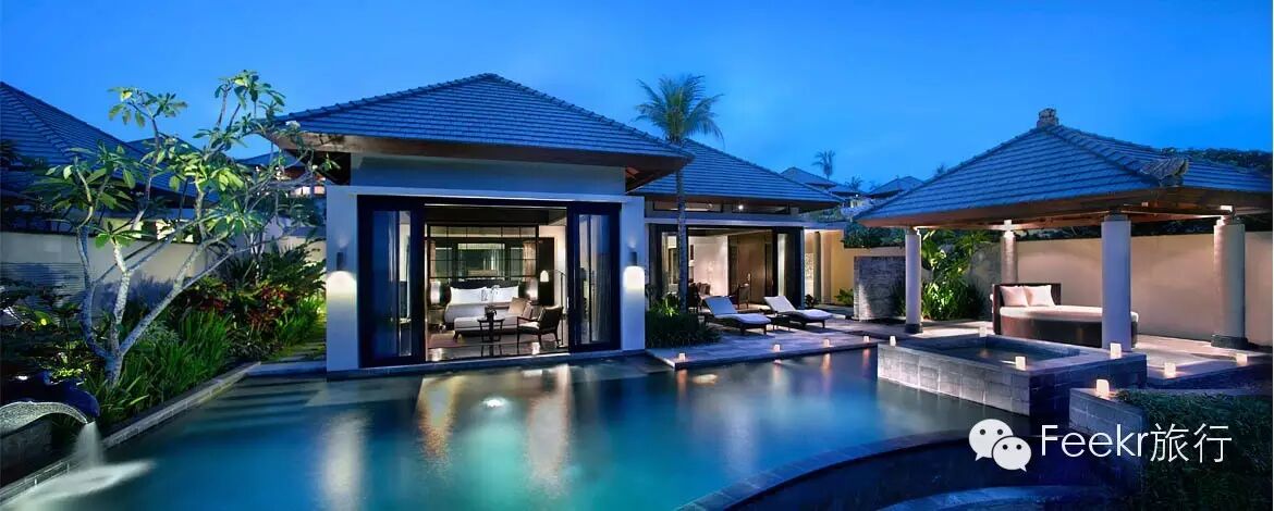 提供 10 米无边泳池、私家按摩池、巴里风情凉亭及私人沙发床,花园郁郁葱葱的怡人景象,也令这一别墅体验尽善尽美。 别墅 403 平方米,宽敞的豪华卧室与通往泳池的台阶相通,迷人的木制走道横跨恬静的池塘,将别墅入口与庭院和起居区打通,会带来意想不到的惊喜体验!扑腾在你自己别墅内的泳池里,来一杯香槟,俯瞰远处近处的海景,夕阳西下,仿佛就畅游在那碧蓝泛着金光的海中间,却又像踏步于曼妙的云中,那种奇妙,那种惬意,不入此景无法知晓。夜幕降临,去酒店中心处的Bambu餐厅和心爱的人享受一顿烛光晚餐,或者去迷人的大泳池边的pool bar小酌些许鸡尾酒,微风拂面,笑意相迎,这将胜过任何的甜言蜜语,爱意就这样无声地弥漫在空气中。