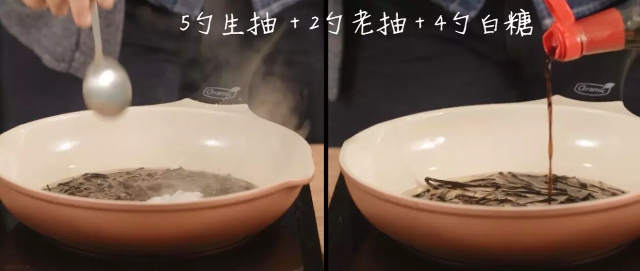 ⑧加5勺生抽,2勺老抽,4勺白糖