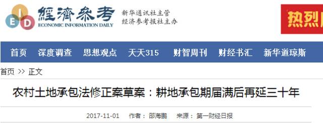 这次的修正案草案确定,国家依法保护农村土地承包关系稳定并长久不变,并明确规定耕地承包期届满后再延长30年。