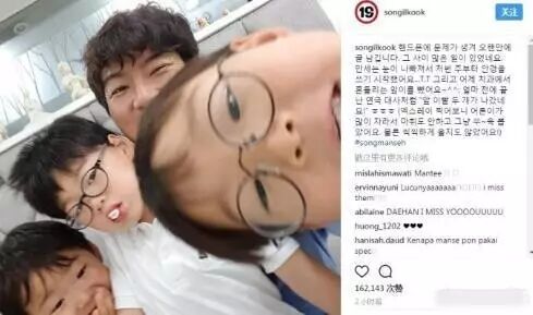 韩国宋家三胞胎大韩、民国、万岁最近状态有点多,爸爸宋一国在IG分享:“最近发生很多事,万岁的眼睛变不好了,上个礼拜开始戴眼镜。”语末附上落泪的表情符号。