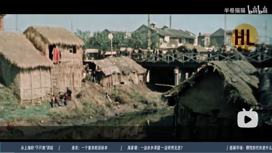 这个地方,叫下只角(wu zi gao),准确地对应到今天的道路上,这里是现在的苏州河以北,闸北和杨浦、普陀等等一大片地方,画面里你看到的是一大群逃难而来到这里的江北和淮北的流民。
