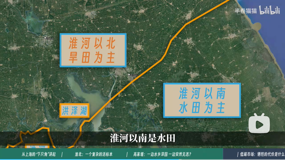 淮北地区在唐代以前稻米种植也是非常发达的,但是因为这样水利设施的破坏淹没和背离了当地自然环境的建设。让农民从靠自己劳苦耕作吃饭变成了靠老天爷的脸色呀。冬天春天洪水少,降水也少,而是一到夏天秋天就经常会泛滥,所以农民经常只能种一季度的越冬的旱植作物。就比方说小麦。于是淮北的稻田是越来越少,我们今天看到了淮河以北是旱田,淮河以南是水田,这样一个看似是个天然分界线的印象,实际上来由并不久。