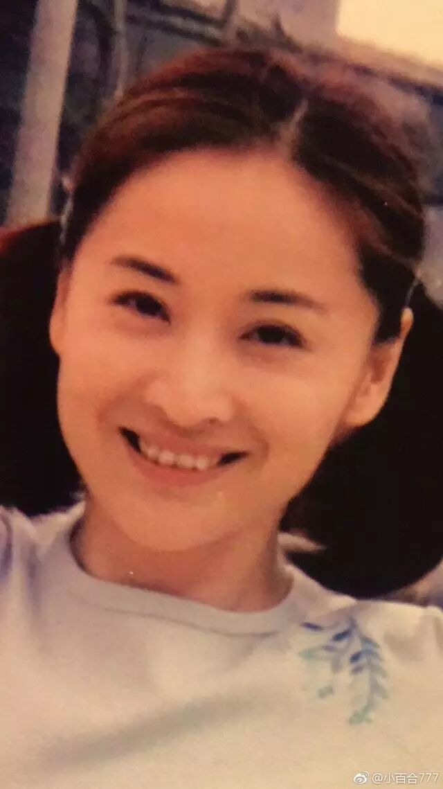 那时于莉的下巴已经有点尖了,再加上一头卷发,看起来还是很时髦的。