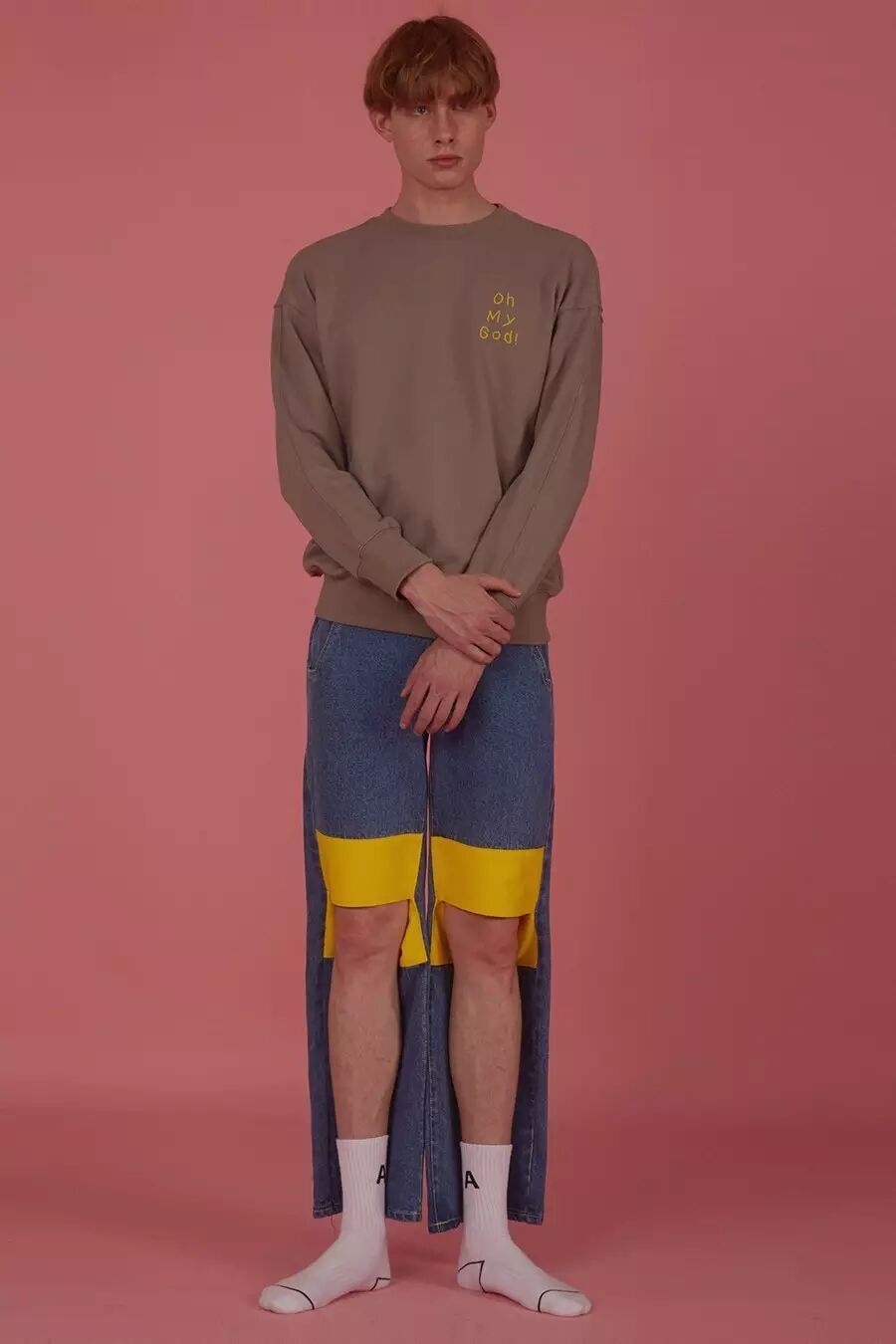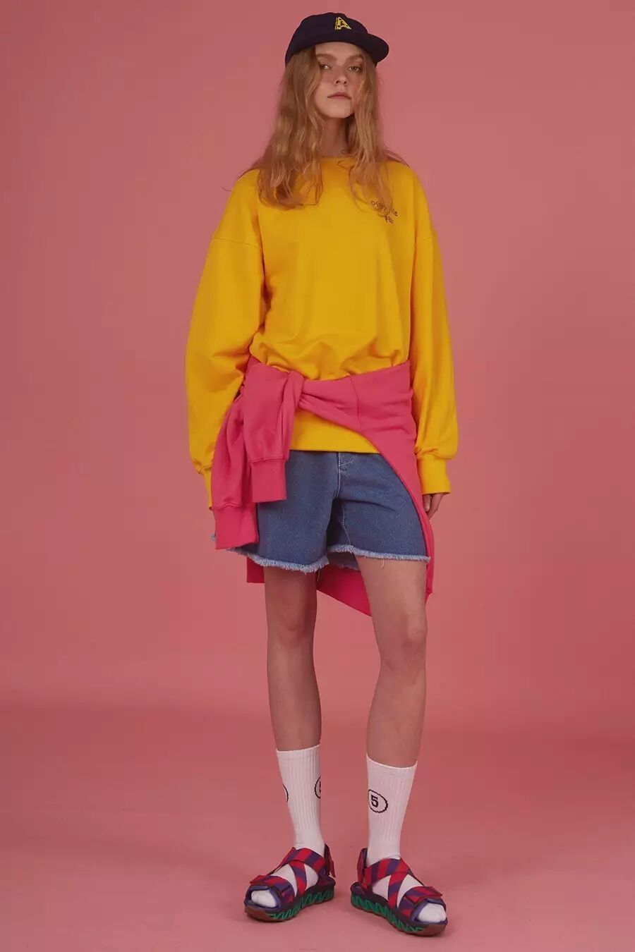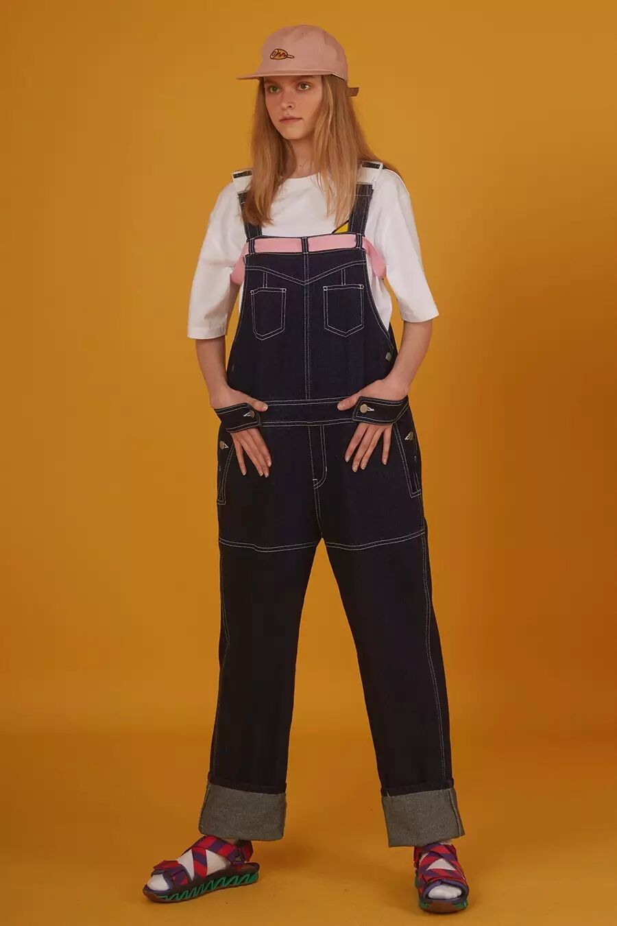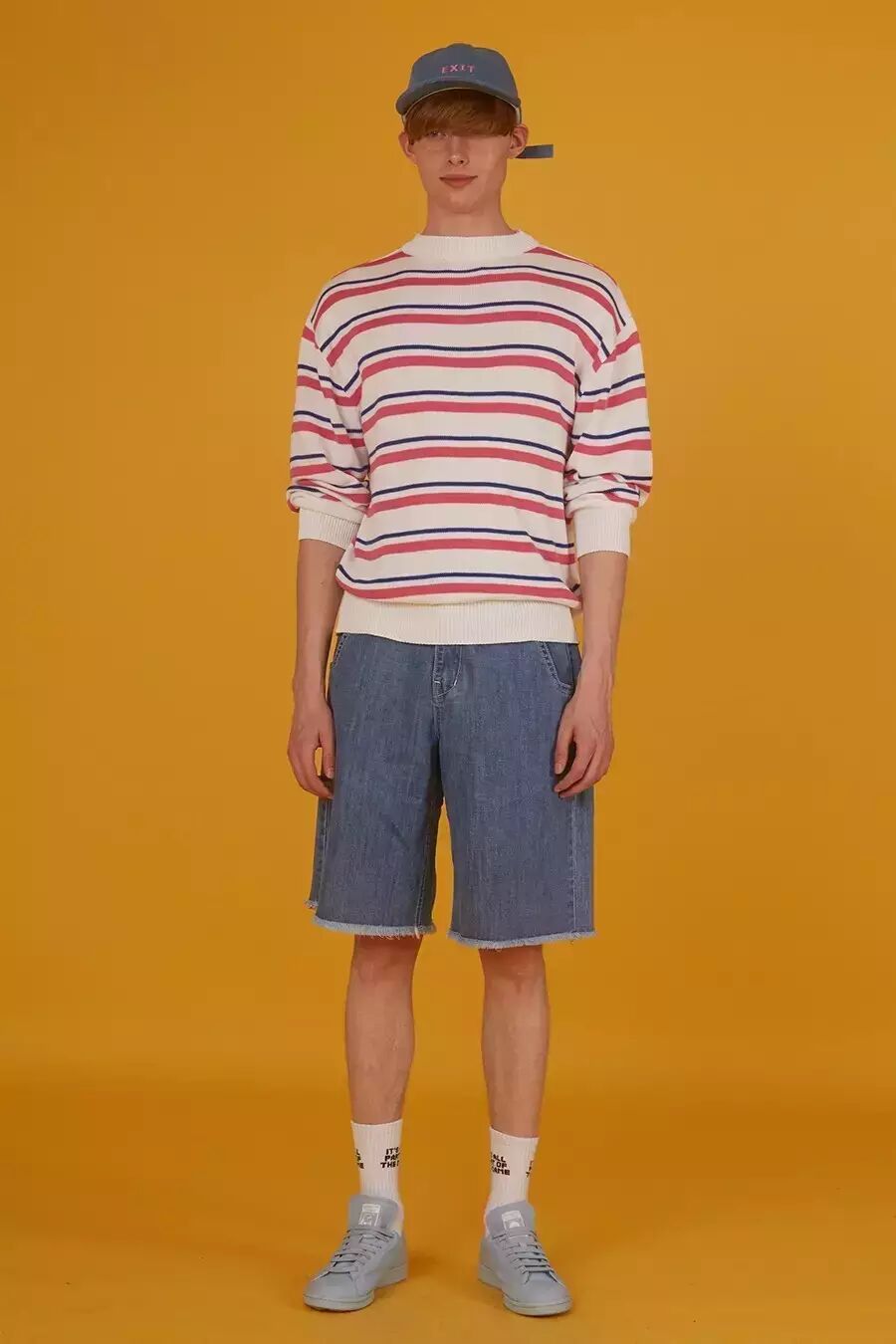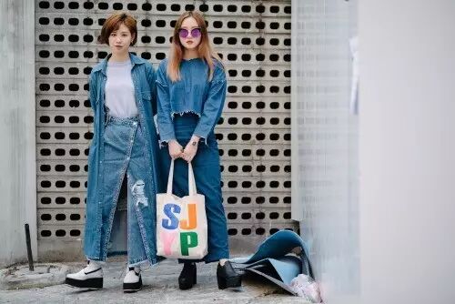 如果你以为SJYP就是上面这种嫩嫩的调调那就大错特错,其实SJYP可以说是一个牛仔品牌,因为它的大多数单品都是主打牛仔的,就像它在自家店铺门口打的标语“BLUE IS MY NAME”,可见SJYP有多么爱牛仔。