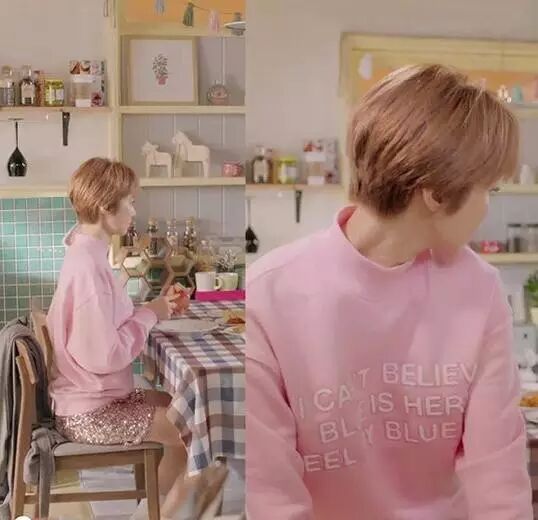 说起这件粉色卫衣,早已经成为东大门爆款了,韩国妹妹们几乎人手一件,而高俊熙在《她很漂亮》中穿着的也是SJYP的粉色卫衣。