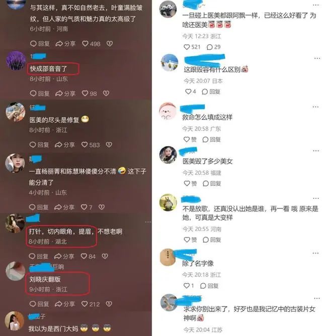 她的微博评论区立即爆了,有的则嘲讽她撞脸刘晓庆、邵音音、西门大妈,有的干脆指出她做了打针、切内眼角、提眉等项目,毕竟昔日的功夫女神如今真的老了!