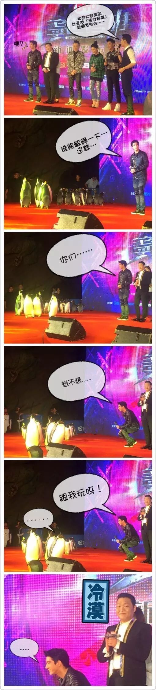 面对当红偶像王力宏电力十足的色诱,及多位明星的热情欢迎,企鹅们竟然还能不为所动!开启高冷大牌模式,无视众明星。