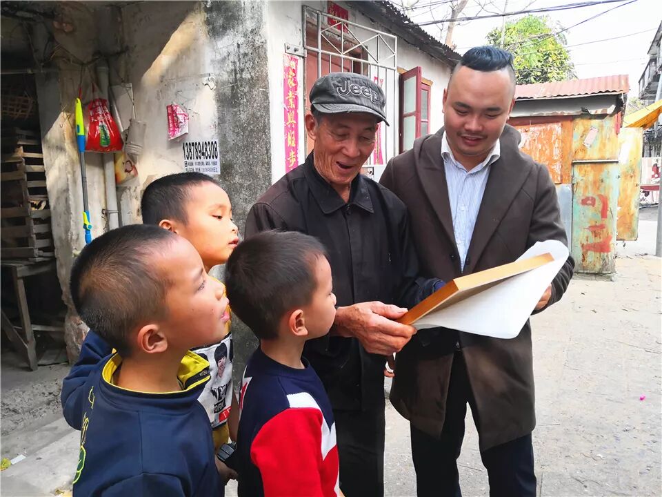 “老人捧着照片,乐得合不拢嘴,让我们很有成就感。”年轻小伙子潘能柔、郭远锋负责为侨港镇104岁的叶成富、105岁的李亚克拍摄全家福,拍摄活动引起左邻右舍的关注,大家对活动津津乐道。两位老人及家人都是难得有机会聚在一起拍摄全家福,他们的开心、喜悦深深感染着潘能柔、郭远锋,“儿孙环绕时,老人笑逐颜开,内心的兴奋一览无余,让人也想拍张全家福。”春节期间,潘能柔也张罗家人拍了全家福,他感叹,每年都应该组织家人拍全家福,形成一种传承,也希望这样的活动越来越多,持续传递敬老爱老正能量。