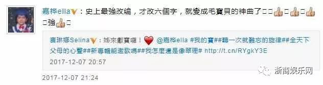 稍后,Ella转发此微博,并吐槽道:“史上最强改编,才改六个字,就变成毛宝贝的神曲了,强!”