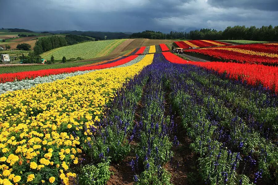 富良野花田是日本最早也是最广的薰衣草花田发源地。每年的7月上旬至8月下旬是薰衣草开得最好的季节,原先只有熏衣草的花田加入白色的满天星、红色的罂粟花、粉色的小町草等,从5月份开始也会陆续有各种花卉盛开。