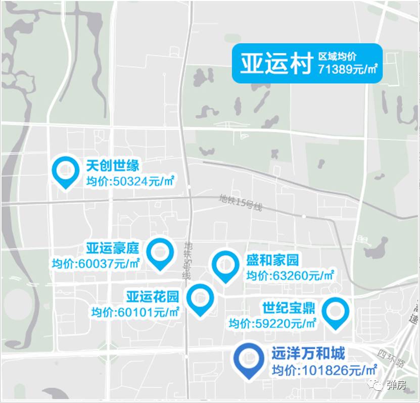 此外,还有亚运花园、世纪宝鼎、亚运豪庭、盛和家园等住宅楼盘,均价在5.9—6.4万元/平米。亚运花园、盛和家园相对低价的原因,主要是由于建成年代较早(2000年以前),没有重点学区,比较适合不考虑学区的人士;世纪宝鼎和亚运豪庭,价格相对较低主要是由于市场关注度较弱,价格涨幅不大。