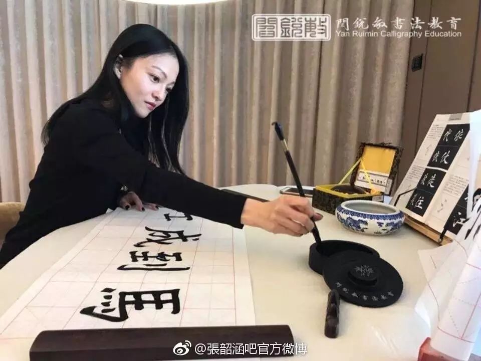 有图有真相 真的是你涵亲手写的哦!张韶涵表示从小就喜欢中国传统文化,她喜欢书法,但碍于繁忙的各种工作,很少能真正的安静坐下来享受书法。