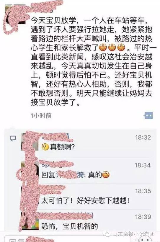 马伊琍好友称,自己的孩子放学后,一个人在车站等车,遇到坏人强行拉她走,她紧紧抱着路边的栏杆大声喊叫,被路过的热心学生和家长解救了。马伊琍呼吁大家遇到这种事情一定记得上前询问及帮助!