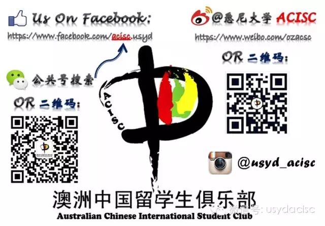 更多精彩敬请关注:悉尼大学ACISC澳洲中国留学生俱乐部,这个火一样的组织。赶快加入吧!