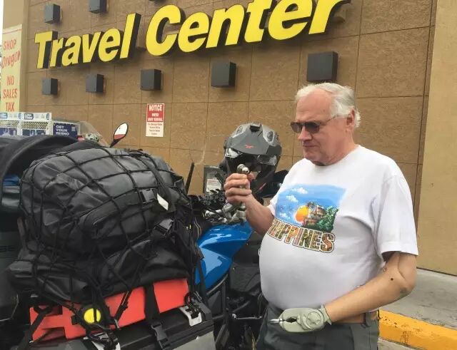因为我曾在墨西哥遇见过一个中过风,走路需要拄拐杖,但依然骑着宝马F750GS从德州一路骑到墨西哥下加利福尼亚南陲的美国大爷,所以当我在俄勒冈Chemult小镇的公路休息站看到一个大腹便便的老人走向他的宝马F800GS车时,我甚至急切地想寻找他身上缺了什么。