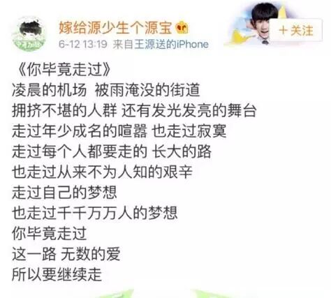 你从我的青春走过,我陪你走过整个青春。王源,中考加油,我要给你写首诗,这是多么暖心的存在呢。