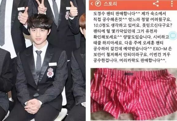 ▲▲EXO的都暻秀的内裤竟遭私生饭在网路上兜售。