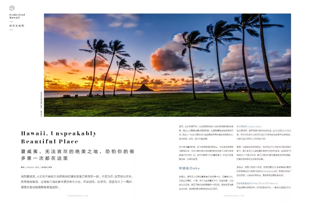 另外,一些新品行程精彩无比,不负期待。在菲律宾私人岛屿体验隐世之趣,或逃离到斐济做浪漫岛主,还可以踏足澳洲亿万富翁的绝美私岛,演绎心中梦幻天堂。如果你需要天堂般的悠然假期,越南芽庄最优雅的海岸线足够静谧。要是选择让人“一见钟情”的夏威夷,每一步都是不同的美景和惊喜。我们照例推荐了很多超高性价比的别墅,可奢华,可传统。此外,你还能看到马尔代夫卓美亚维塔维丽酒店如何超额满足你对人间天堂的一切期许;还有一段废弃老糖厂变身顶级酒店的传奇故事。
