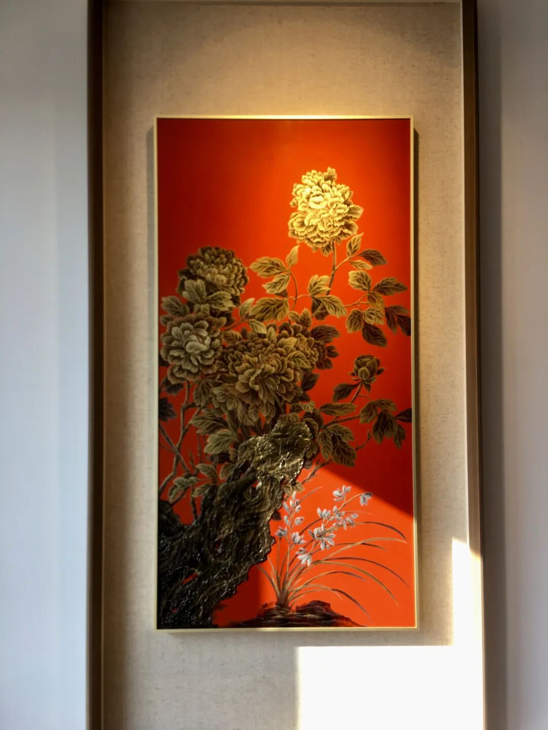精于传统技艺,陈冰秉承师父一脉,只做无勾勒晕金漆画。但由于题材限制的缘故,这一技艺似乎很难有更多的拓展。