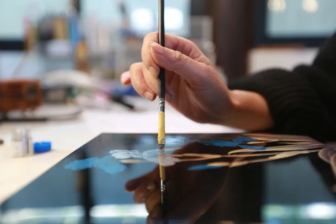 首先要配制好金地漆,才能有效地控制好漆的粘性和干度。陈冰入门时便从师父那学到了调配比例,但至今仍需要根据气候变化一次次地调试。