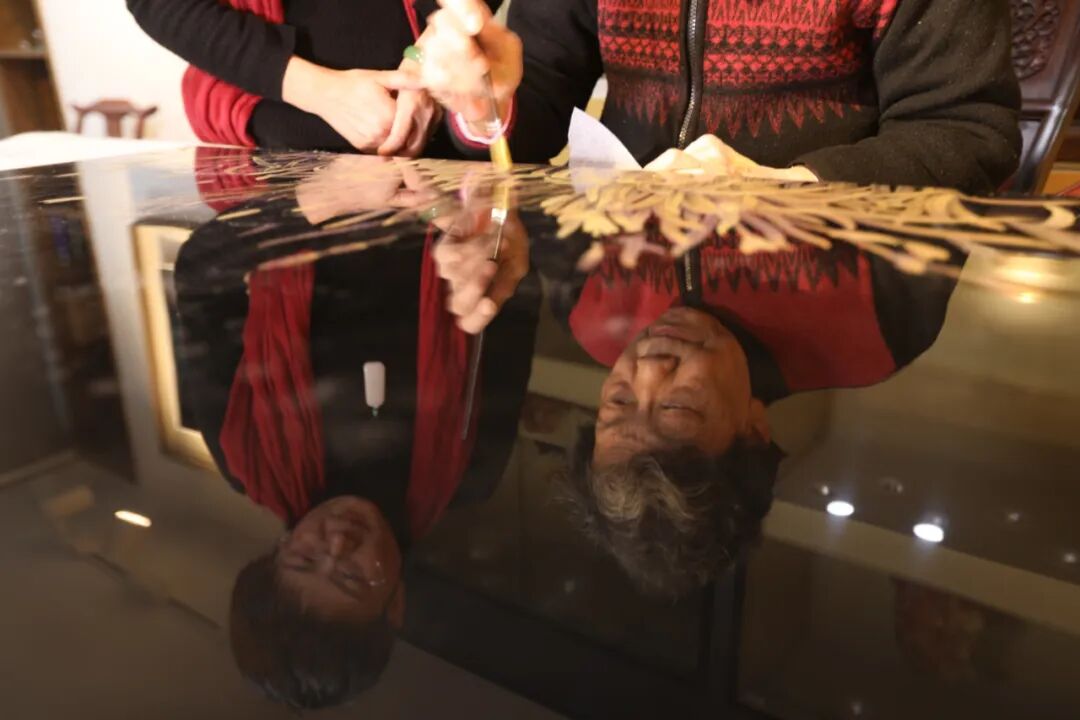 仅是刻纸模这道看似简单的工序便需要长时间的练习,要刻出自然的曲线条即使是有着扎实绘画基础的人也无法轻易上手。陈冰刻的纸模不仅丝毫不差,她还能从分散的众多“花瓣”中快速找到相对应的,或者一眼便能看出对错多少,这是多少个日夜方能训练出的“敏感”。慢工出细活,陈冰的每件作品都恪守与时间的约定。