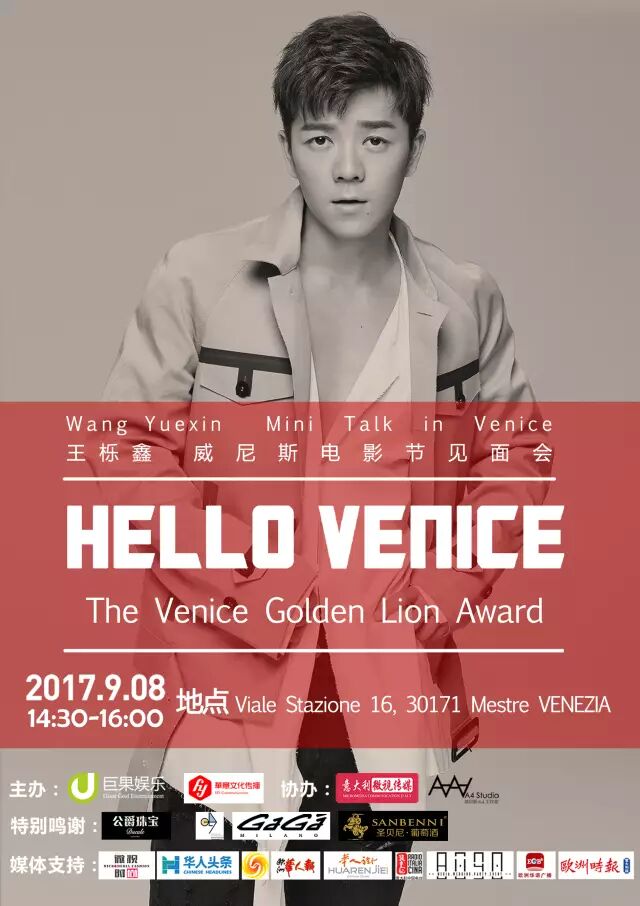 本次王栎鑫威尼斯电影节见面会由巨果娱乐、华艺文化传播主办,意大利微视传媒、威尼斯A4工作室协办。意大利各大媒体出席。